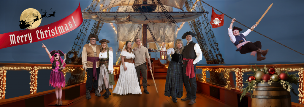 With visions of “A Pirate Christmas” now dancing in my head, I pitched the idea to kids, fully expecting them to roll their eyes and refuse to play along. “Let’s have a Pirate Christmas. I’ll take your picture with you wearing whatever interpretation of pirate you want. It can be a lot. It can be a little. I don’t care. Just have fun. Then I’ll take all the photos and merge them (somehow) into a story.
