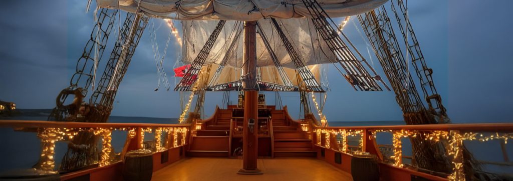 The ship on the card is a combination of multiple AI elements, some original elements created in Photoshop, along with tweaking the lighting, perspective, and more. In this almost-right image, you can see AI only goes so far…see the missing rigging on the right and the dangling ropes on the left? And Generative Fill could not have been more unhelpful. Good thing I enjoy Photoshopping!